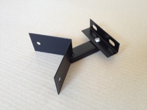 Corner Bracket for Halogen Fittings. The bracket has a number of holes in the backing plate that permits most of our exterior lights to be attached to it.