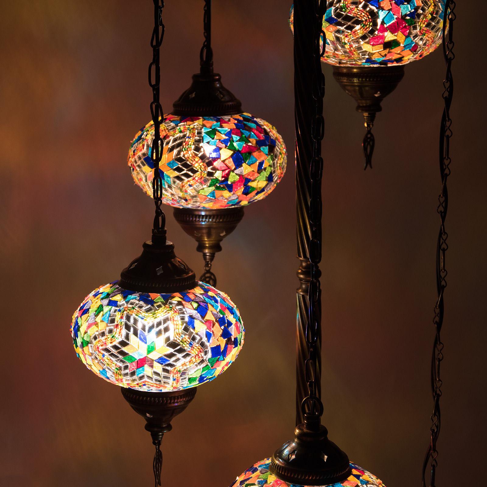 We supply to trade and private customers and ship worldwide. Get in touch today to see how we can help. TURKISH MOSAIC FLOOR LAMP , MEDIUM GLOBES, Globe Sizes:5. The coloured stained glass we use for making our mosaic lanterns is original and will not fade. You do not need to buy any bulb.